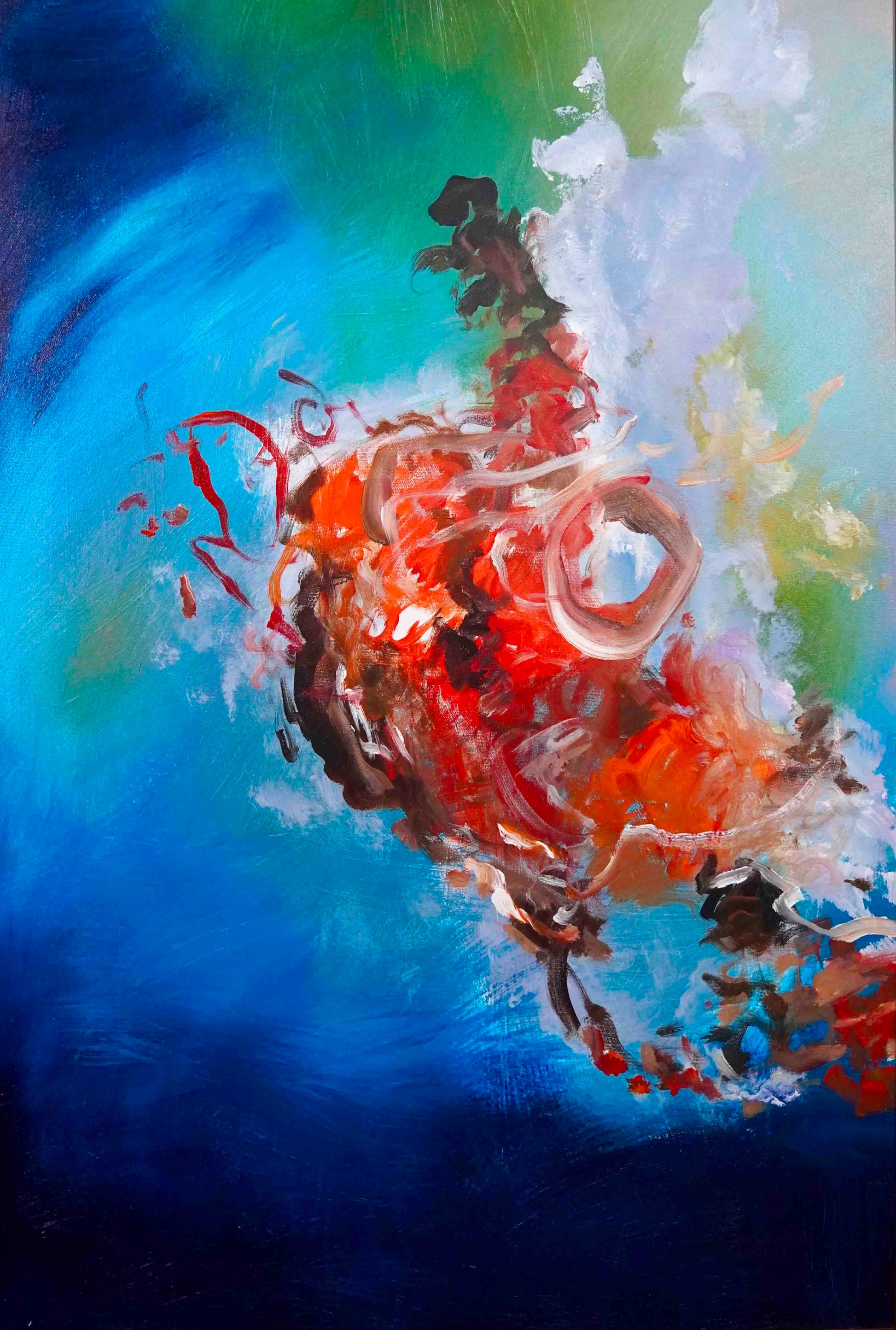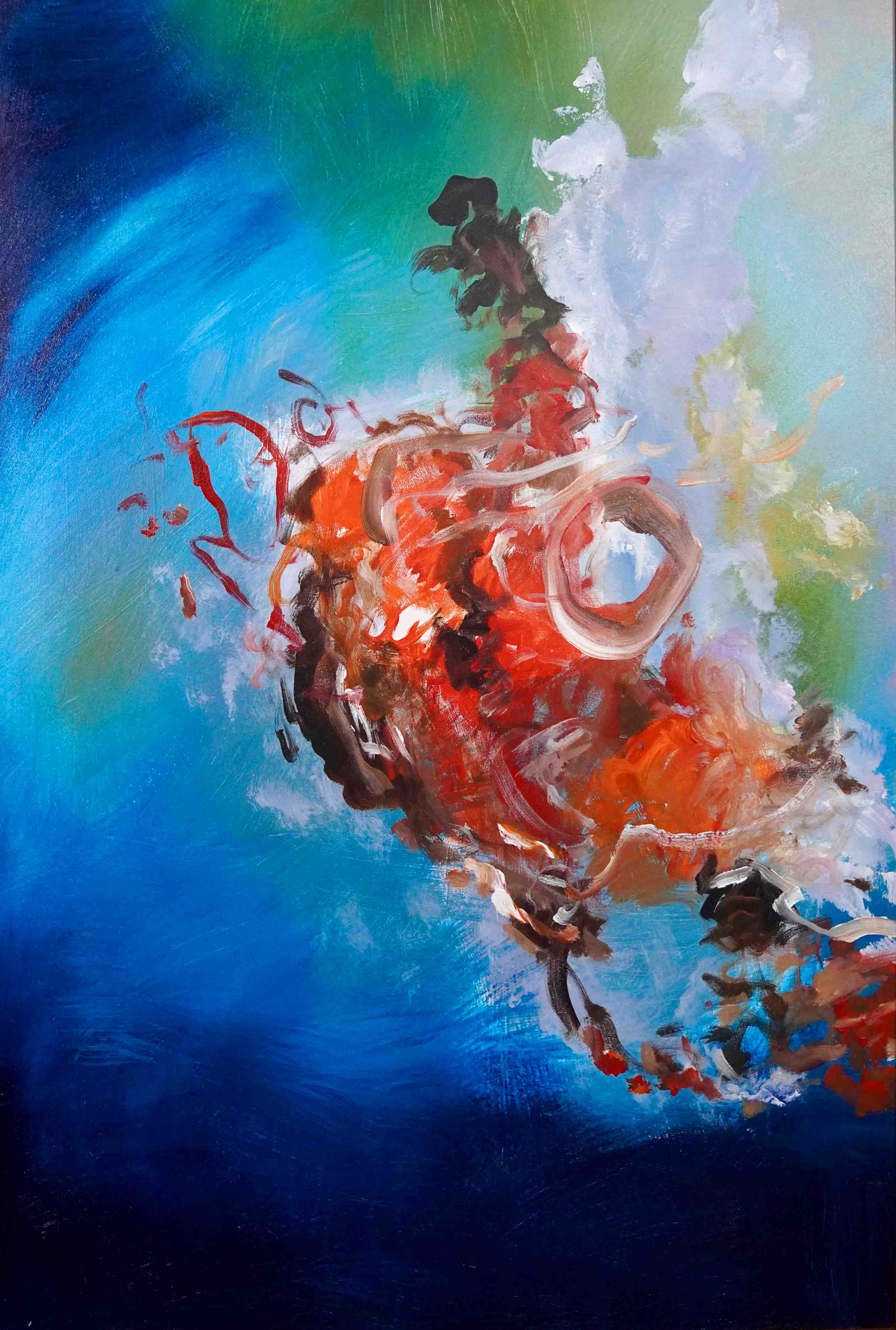 Brush painted acrylic abstract painting with oil pastel on canvas.
