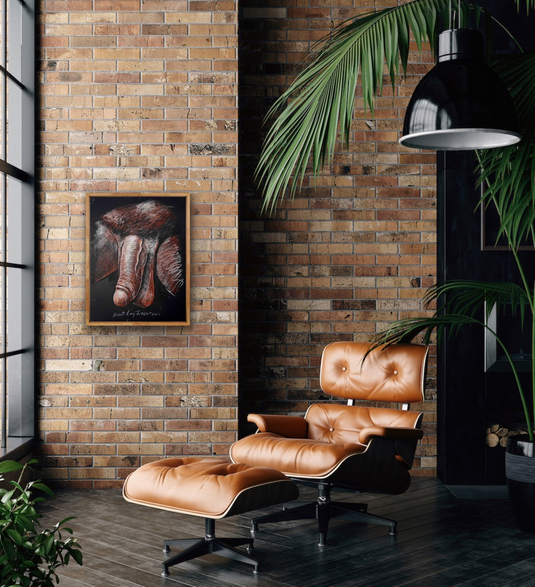 Free-hand self portrait drawing of Brent Ray Fraser's penis with conte and charcoal on paper.