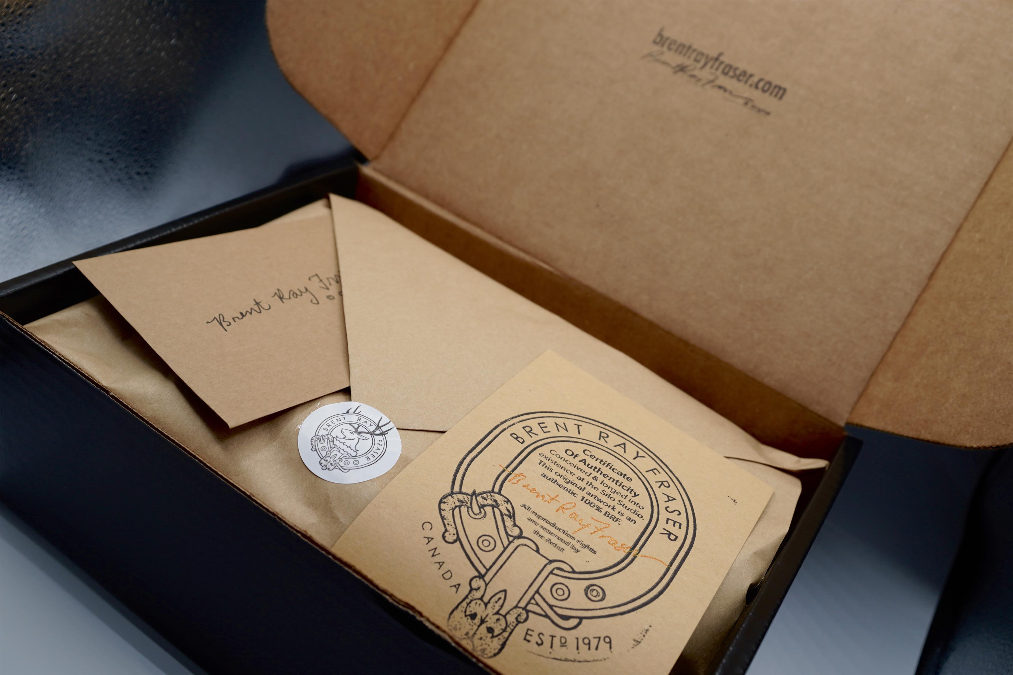 Each original artwork is personally selected, signed and wrapped by Brent inside the silo studio.
